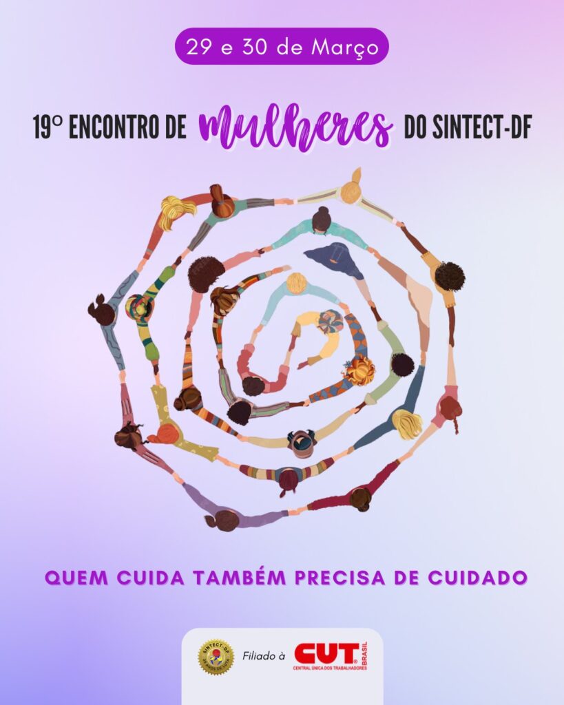 O Sintect-DF convida todas as mulheres para o 19º Encontro de Mulheres, um espaço de diálogo, fortalecimento e acolhimento. Com o tema “Quem cuida também precisa de cuidado”, o evento abordará questões urgentes sobre a política pública de cuidado e a importância do autocuidado na vida das mulheres.