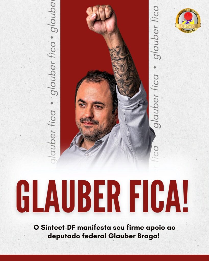 09 de abril de 2025 – O SINTECT-DF manifesta seu firme apoio ao deputado federal Glauber Braga (PSOL-RJ), cujo mandato está sob grave ameaça de cassação por um processo claramente político e persecutório. A tentativa de retirá-lo do Congresso Nacional é um ataque à democracia e à representação popular, especialmente porque Glauber é um dos poucos parlamentares que efetivamente defendem os interesses da classe trabalhadora, os Correios e as empresas públicas brasileiras.